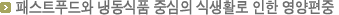 맛있는 주스와 탄산음료 그리고 스낵과자 등등 좋아하는 음식을 취향대로 먹을 수 있는 생활. 원인은 여러 가지 있지만 첫 번째 문제점은 역시 식생활 변화이다.