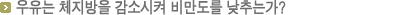 우유를 매일 400㎖ 이상 마신 학생의 체지방율은 23.6%이고, 우유를 거의 마시지 않은 학생과 100㎖ 미만을 마신 학생은 25.6%인데 비해 2.0% 낮았고,체중과 키에는 거의 차이가 없었다. 미국에서도 비슷한 연구결과가 보고되었는데 우유에 함유된 비타민D와 칼슘이 관계하고 있을 가능성을 시사하고 있었다.