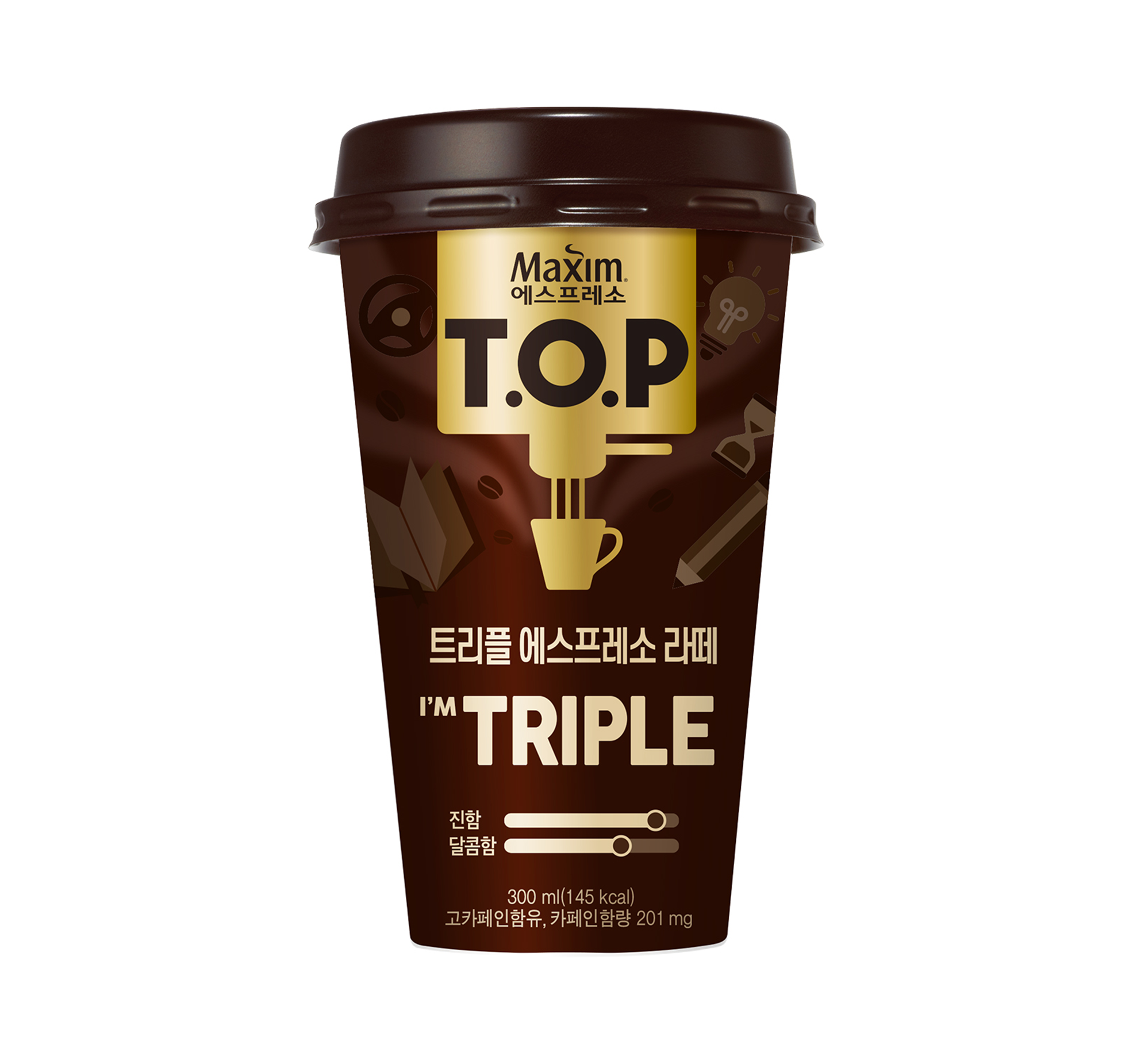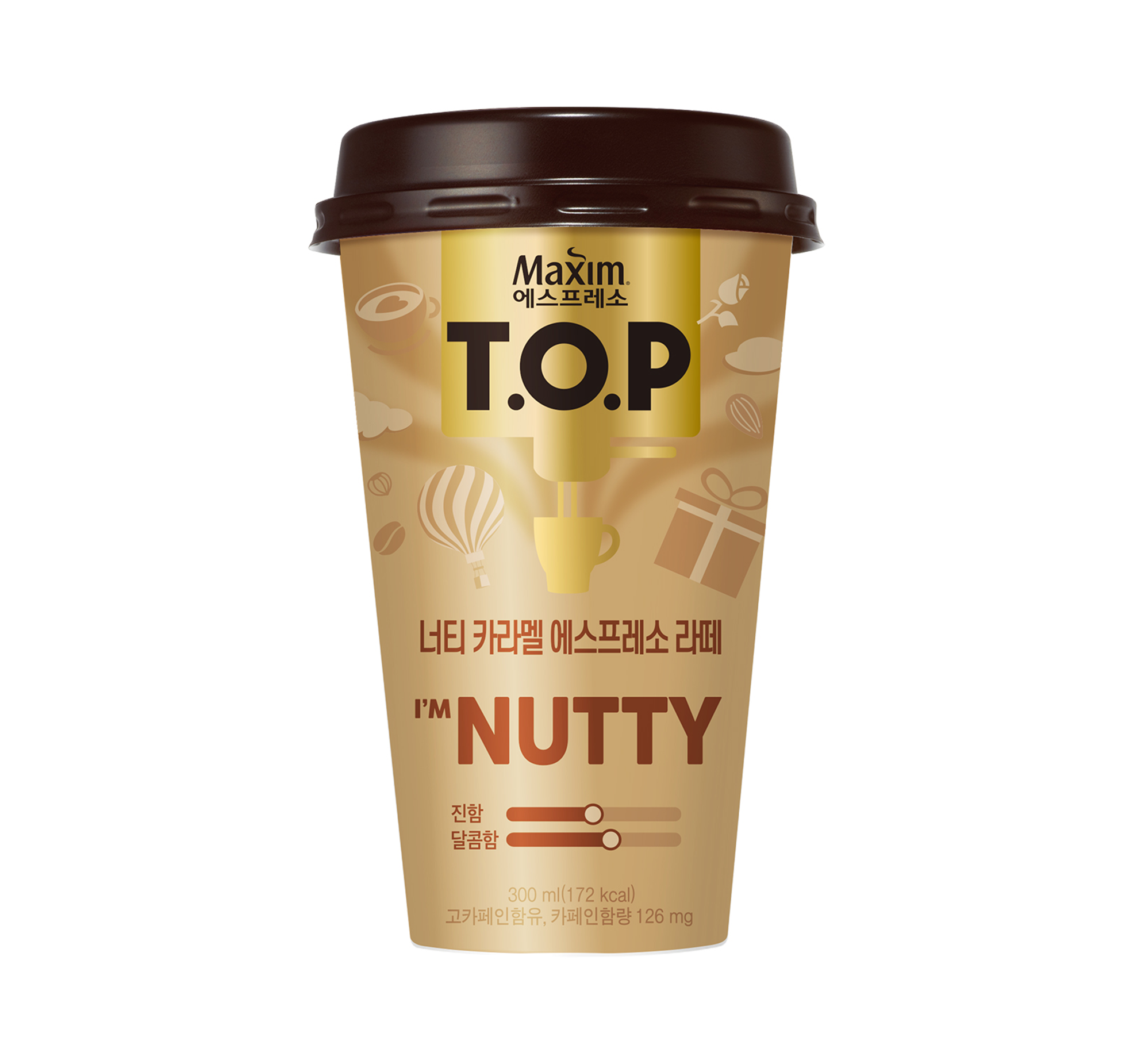 -맥심 TOP 커피 본연의 맛에 서울우유 1급A 우유와 카라멜의 단맛과 너티의 고소함을 더한 커피음료